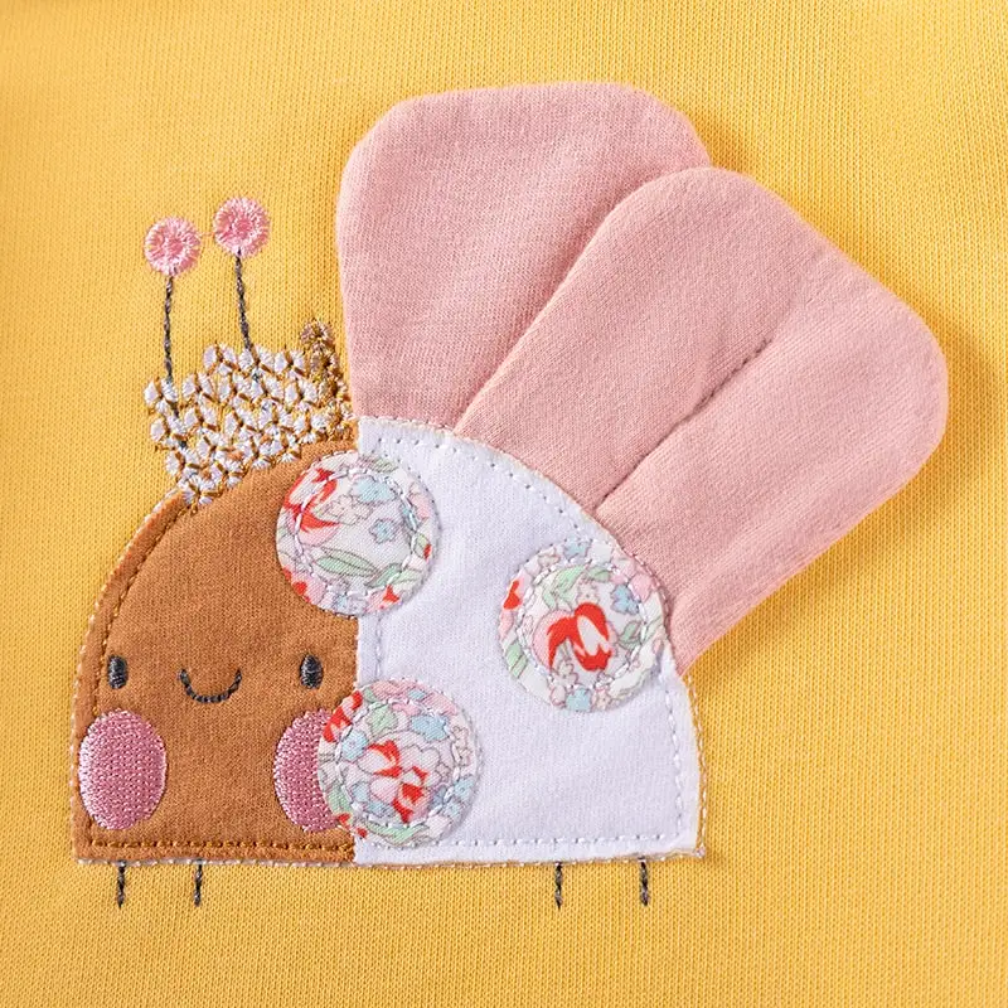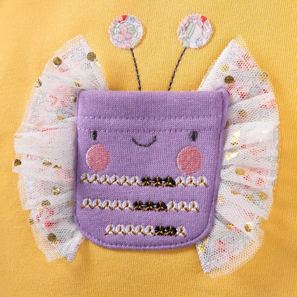 The Buzzy Dress buzzes with playful charm, featuring cheerful bee and butterfly appliqués and sunny yellow accents on soft, breathable cotton. With a twirly skirt, it’s perfect for little ones who love to play, and shine even during the cold seasons.